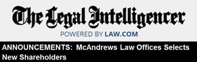 March 2019 FOR IMMEDIATE RELEASE BERWYN, PENNSYLVANIA, March 2019 – Nationally recognized firm McAndrews Law Offices is excited to announce the opening of its Pittsburgh office to serve Western Pennsylvania…