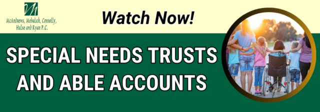 2024: Watch McAndrews Law Offices’ Webinar: “SPECIAL NEEDS TRUSTS AND ABLE ACCOUNTS” Watch this Zoom Webinar hosted by The Estates and Trusts Department of McAndrews, Mehalick, Connolly, Hulse and Ryan…