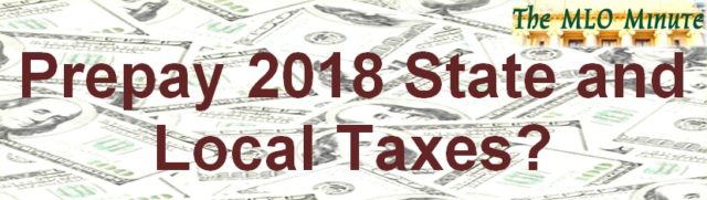 The MLO Minute Prepay 2018 State and Local Taxes? December 21st, 2017: A new comprehensive tax act was passed this week by the House and Senate. Originally, most tax professionals…
