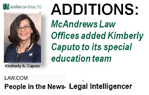 Fall 2018 The Legal Intelligencer welcomes McAndrews Law Offices’ new special education attorney, Kim Caputo! The Legal Intelligencer: McAndrews Law Offices added Kimberly Caputo to its special education team. Caputo joins…
