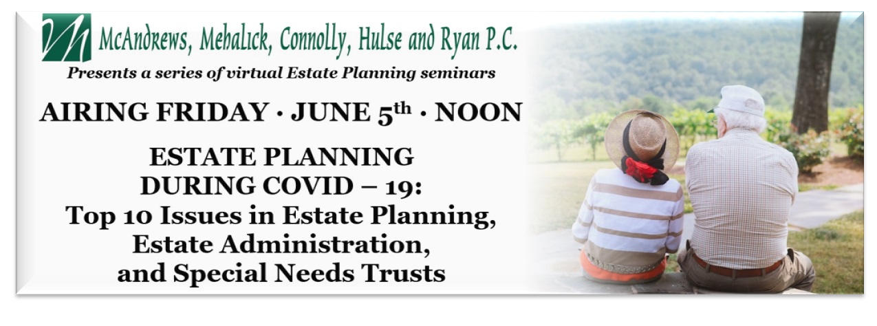 Our Estate Planning Department is presenting a series of free virtual seminars in the upcoming weeks to assist families and professionals in coping with issues related to the current health crisis, while planning for next steps in the weeks and months to follow. This initial presentation entitled: “Estate Planning During COVID – 19: Top 10 Issues in Estate Planning, Estate Administration, and Special Needs Trusts” will be provided by Dennis McAndrews, Esq . and our Supervising Partner of Estates and Trusts, Lesley Mehalick, JD, LLM