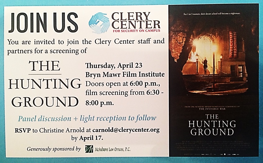 On Thursday, April 23rd, 2015, McAndrews Law Offices and The Clery Center for Security on Campus hosted a screening of “The Hunting Ground” at the Bryn Mawr Film Institute! This documentary was directed by the Oscar-nominee director, Kirby Dick, and it explores rape crimes on college campuses across the U.S., including the measures that institutions have taken to cover up such crimes. Dennis McAndrews, Esq., the founder of McAndrews Law Offices and the co-founder of Higher Education Decisions Group, Inc. (HEDG) with Joseph McGettigan, Esq. participated in the panel discussion and discussed the proper roles of colleges in conducting adjudications of allegations of sexual misconduct.