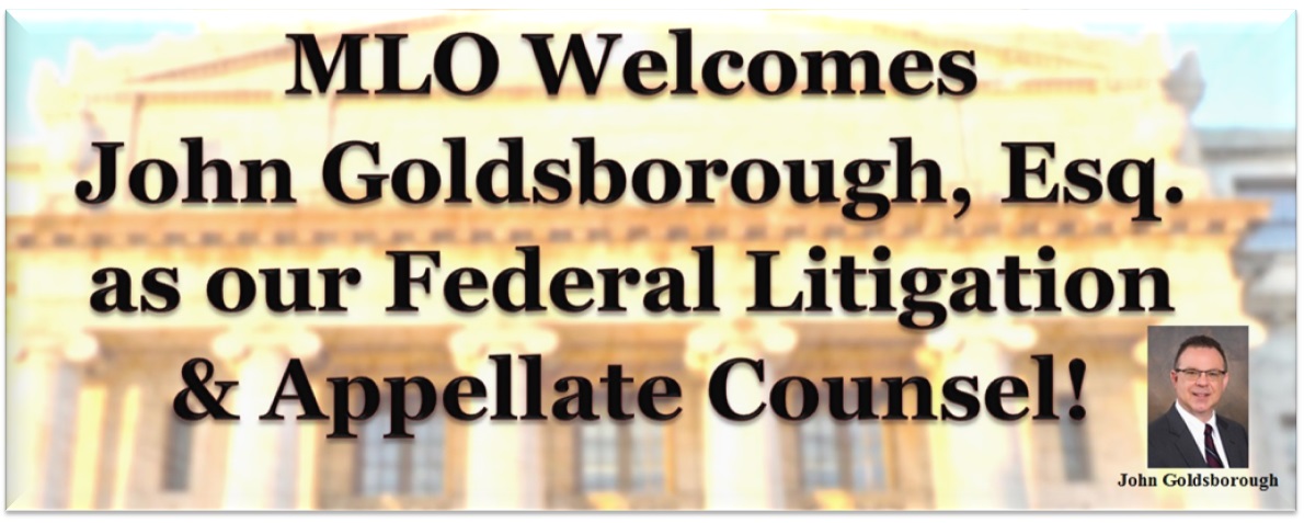 It is with great pleasure that we announce the hiring of John W. Goldsborough, Esq., as our federal litigation and appellate counsel in our Berwyn office!
