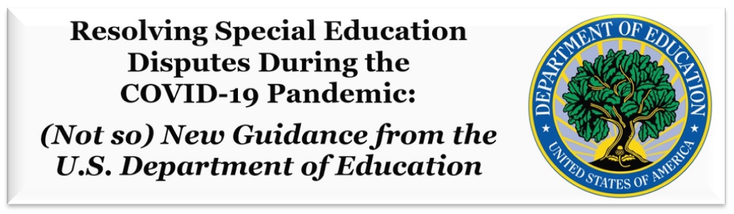 On Monday, June 22, 2020, the United States Department of Education issued new guidance on resolving special education disputes during the current pandemic – well, maybe not so much “new” guidance, but a reemphasis on what federal special education regulations already allow, which may be helpful during school closures. Specifically, the USDOE issued two guidance documents in a question and answer format (Q&A). One is for early intervention ( Part C ) and another is for preschool and school age ( Part B ). Overall, the guidance encourages school districts and parents to attempt to work collaboratively to resolve disputes, but acknowledges that when such attempts fail all three of the IDEA’s dispute resolution mechanisms – a state compliance complaint, mediation, and due process hearings – options remain available to families and school districts alike. In Pennsylvania, other alternative dispute resolution options, such as facilitated IEP meetings or Hearing Officer Settlement Conferences, also remain available.