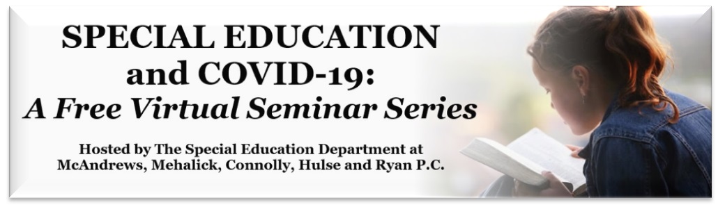 We now have much greater information about the virus, and federal and state guidelines have been propounded concerning the necessary factors to allow children with disabilities to receive in-person instruction. The Special Education Department at McAndrews, Mehalick, Connolly, Hulse and Ryan P.C. will be presenting “Special Education and COVID-19: A Virtual Seminar Series” in the upcoming weeks to assist families that are facing educational issues related to the current health crisis. The first seminar entitled “Maintaining In–Person Special Education Programming When Schools Close or Retrench” will be presented by Michael Connolly, Esq., Supervising Partner of Special Education, Dennis McAndrews, Esq., Founder, and Kimberly Caputo, Esq. Join them for an in-depth discussion of this critical topic for children with disabilities. We will be airing the seminar on Friday, August 7th, 2020 at NOON via our electronic newsletter The MLO Minute. The presentation will later be published on our website, Facebook, YouTube, and LinkedIn pages so make sure to follow us!
