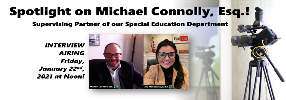 Airing Friday, January 22nd, 2021 at Noon! As an opportunity for our clients, colleagues, families, and friends to learn more about our MLO team, our attorneys and staff are participating in a video series throughout the upcoming months to highlight our individual team members. These interviews include conversations and legal discussions, and are a wonderful way to get to know our legal family. In this next interview, Ally McAndrews, M.Ed., Director of Marketing, will be talking with Michael Connolly, Esq., Supervising Partner of our Special Education Department! Michael will discuss his background in the field of Special Education law, his role and duties as Supervising Partner, how our firm has dealt with the current pandemic, and the most rewarding aspects of serving the needs of individuals with disabilities. Make sure to check your inbox for our MLO Minute electronic newsletter this Friday, January 22nd, 2021 at Noon and be one of the first to view Michael’s interview!